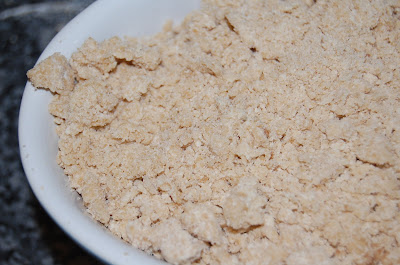 Place your flour into a bowl with your margarine and sugar and rub together with your fingers until you get a bread crumb constistancy.